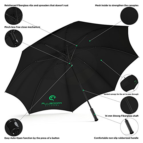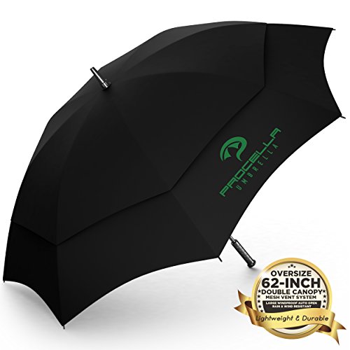 -. Binding : Misc. -. Brand : Procella Umbrella -. Feature : ★ TOP-RATED GOLF UMBRELLA - An Amazon best seller! We guarantee it will be the best you've owned. / ★ UNIQUE DOUBLE CANOPY MESH VENTED SYSTEM - Totally windproof! Holds up against strong gusts and rain. / ★ OVERSIZE 62 INCH CANOPY - Large enough to keep even two people sheltered from the elements! / ★ OPENS WITH ONE HAND - The Procella features a pinch-less auto open feature and ergonomic handle. / ★ LIGHTWEIGHT AND DURABLE - With rust-proof, fiberglass framework, the Procella weighs just 1.1 pounds. -. IsAutographed : 0 -. IsMemorabilia : 0 -. Label : Procella Umbrella -. Manufacturer : Procella Umbrella -. MPN : 62 Inch Golf Umbrella -. PackageQuantity : 1 -. PartNumber : 62 Inch Golf Umbrella -. ProductGroup : Sports -. ProductTypeName : SPORTING_GOODS -. Publisher : Procella Umbrella -. Size : 62 -. Studio : Procella Umbrella -. Title : Procella Golf Umbrella 62-inch Large Windproof Auto Open Rain & Wind Resistant