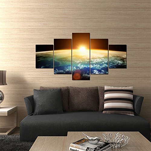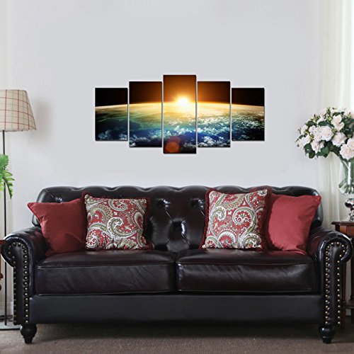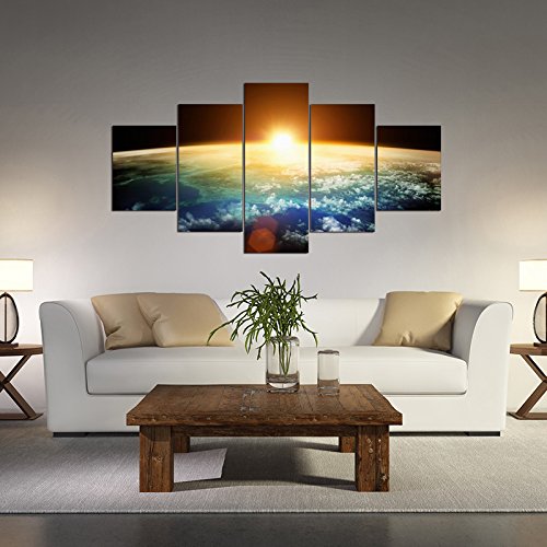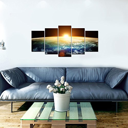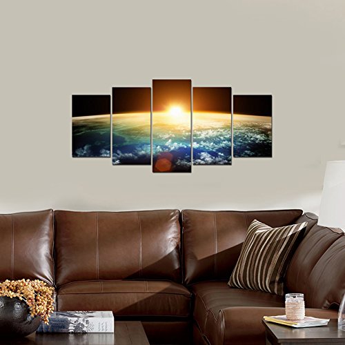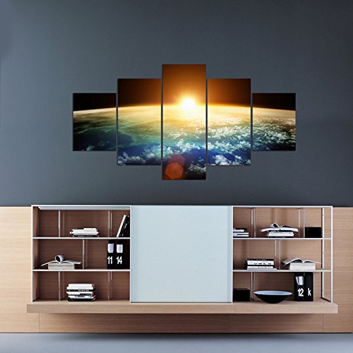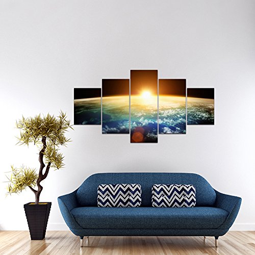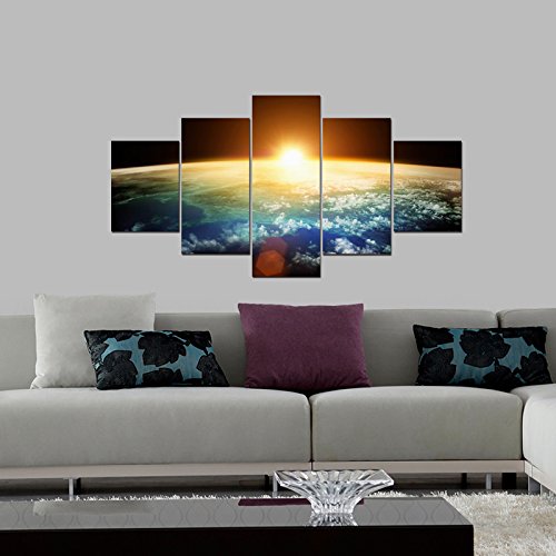 -. Title : Pyradecor the Earth 5 Panels Modern Seascape Artwork Giclee Canvas P.R.Ints on Stretched and Framed Canvas Wall Art Ready to Hang for Wall Decor