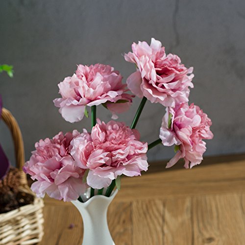 Decorlife Artificial Silk Peony Flower 5 Heads Flower Bridal Wedding Bouquets for Farmhouse Home Wedding Party Hotel Decor (Pink)