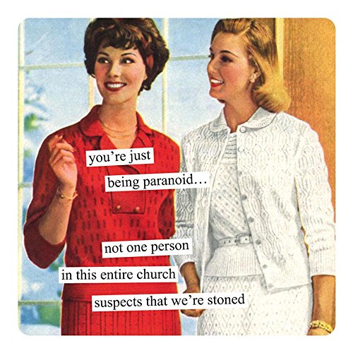 -. Feature : Very strong magnet / Features the saying "You're just being paranoid; not one person in this entire church suspects that we're stoned" / Individually bagged perfect for gift giving / Great for posting notes, memos and photos on your fridge or other magnetic surface / Measures 3-3/8-Inch square
