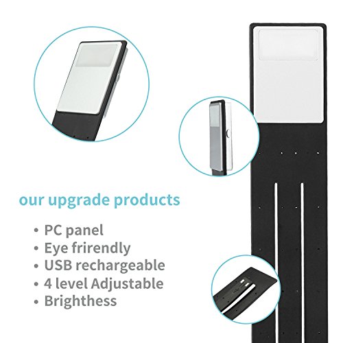 - ● Soft Light LED Panel and four Level Brightness - this little book light casts a soft and natural light, the light is fairly proper bright,you can adjust the brightness with 4 level,brought you a great night reading travel.
