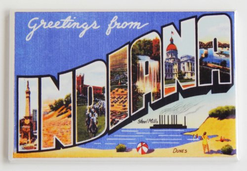 -. Brand : Blue Crab Magnets -. EAN : 0640265404238 -. Feature : Size: 2 x 3 inches / Material: Metal and Hard Plastic / The Highest Quality Magnet Available / Made in USA / Search Thousands of Unique Magnets in Our Store! -. Label : Blue Crab Magnets -. Manufacturer : Blue Crab Magnets -. ProductGroup : Kitchen -. ProductTypeName : KITCHEN -. Publisher : Blue Crab Magnets -. Size : 2 x 3 inches -. Studio : Blue Crab Magnets -. Title : Greetings From Indiana Fridge Magnet (2 x 3 inches) -. UPC : 640265404238