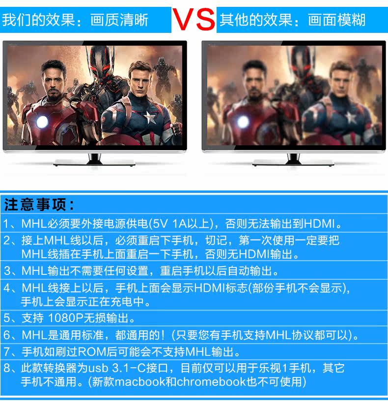 乐视手机专用 高清电视转接 无损转换 即插即用