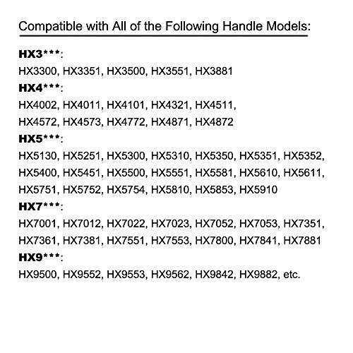 ??Efficient: Super powerful to remove plaque and prevent gingivitis two times better than a regular toothbrush. Your teeth will feel cleaner for a longer period of time. You will feel like you have gone to the dentist after brushing just one time! ??Convenient: Each toothbrush heads equipped with a hygienic travel cap, no more dust. ??Save Money: Spend 1/3 money, get toothbrush heads that are most comparable to original Sonicare. Once you buy Toptheway brush heads, we will provide Life time warranty for you. Compatible with Following Philips Handles: ? Essence: HX3211, HX3281, HX5251, HX5351, HX5352, HX5551, HX5581, HX5610, HX5620, HX5630, HX5753, HX5853 ? E-series: HX7001, HX7012, HX7023, HX7022, HX7052, HX7053 ? Elite: HX5910, HX7351, HX7361, HX7553, HX9552, HX9882 ? CleanCare ( ): HX3214, HX5350, HX5751 ? Advance: HX4001, HX4011, HX4101 ? Xtreme: HX3351, HX3551, HX3881 Package Contents: 6 count E-Series replacement heads with 6 hygienic travel caps in a sealed package 0