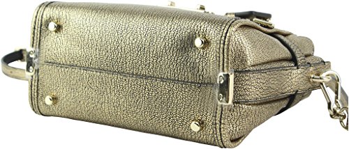 Finished by hand in refined metallic leather with a soft glow and a wonderfully pebbled texture, this mini carryall gets its Swagger from statement belting and bold double-turnlock hardware. The long strap snaps on with ease for hands-free wear. Imported. Style 35990.Feature