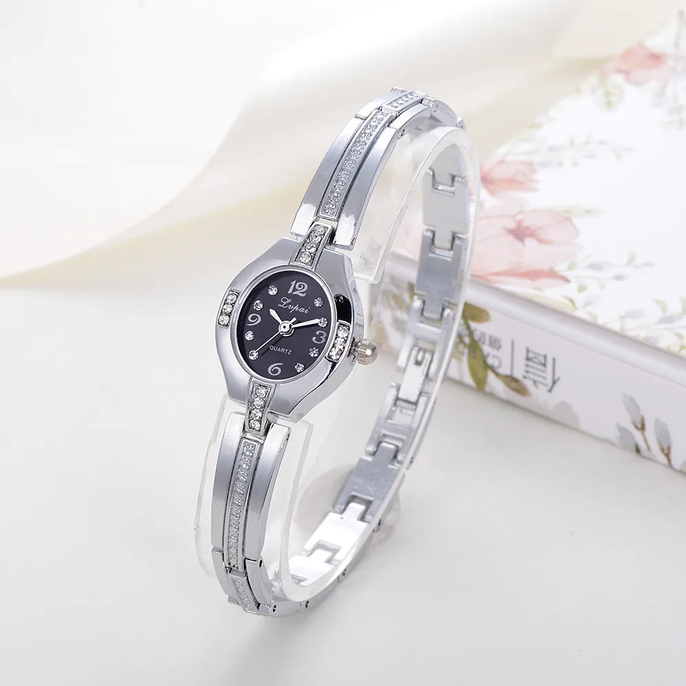 | [해외] 팔찌 시계 패션 여성 시계 라인 석 크리스탈 숙녀 여성 시계 스테인레스 스틸 쿼츠 손목 시계 Reloj Mujer |