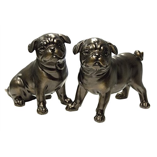 Benzara Striking Pug Dog Figurine-Copper, Assortment of 2 Animal Statue, 2 Piece