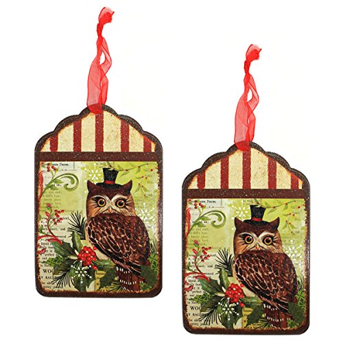Holiday Lane Vintage-Style 6-inch Woodland Owl Print Tin Tag Christmas Ornaments (Set of 2)