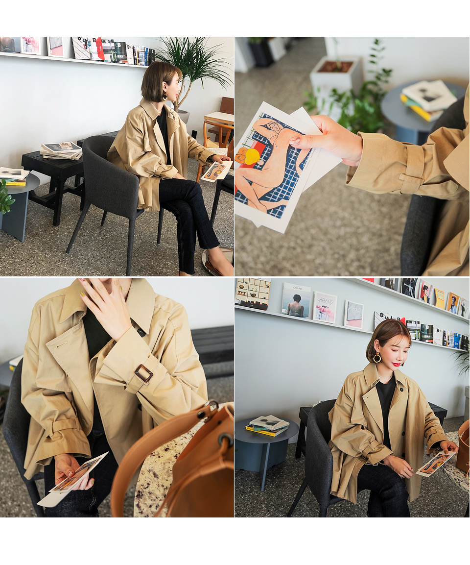 스타일리쉬한 무드와 체형커버를 도와주는 멋스러운 숏 바바리에요!