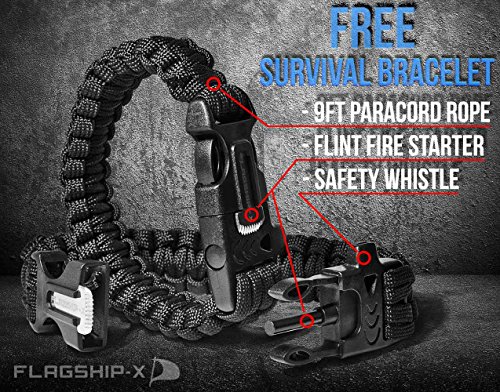 BONUS MILITARY GRADE 4-IN-1 survival tool paracord bracelet: Includes a fire starter, knife/scraper, whistle. Disassembles into over 9ft survival rope with verified tensile strength of up to 500 lbs.