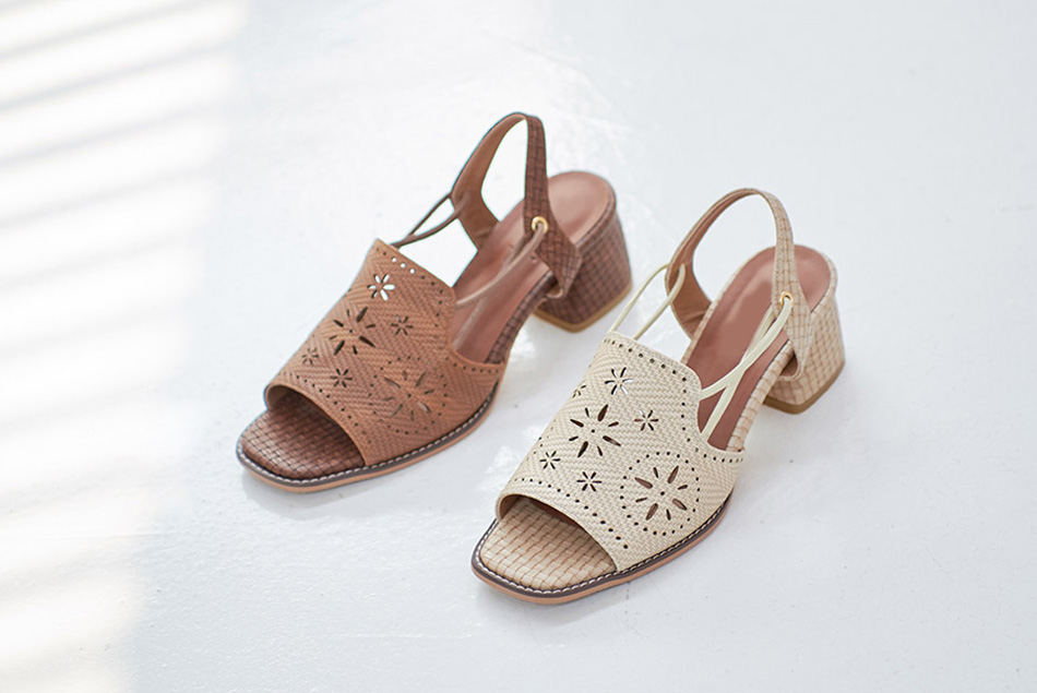 넓은 스트랩에 시원한 펀칭 디테일이 있고