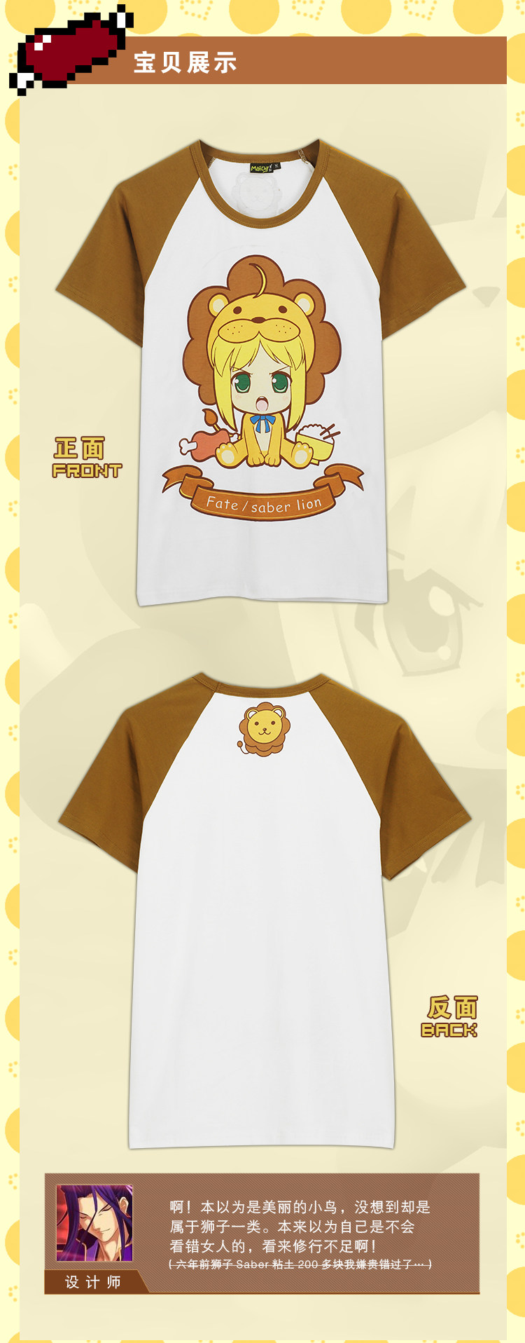 动漫 周边saber狮子纯棉短袖T恤fate stay night/zero嘉年华