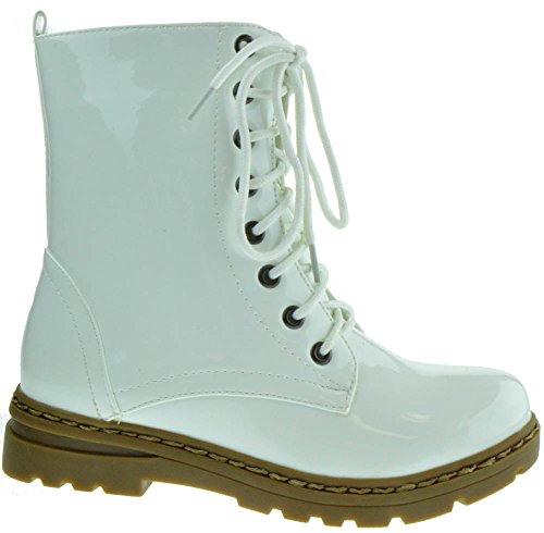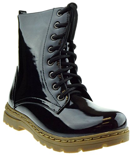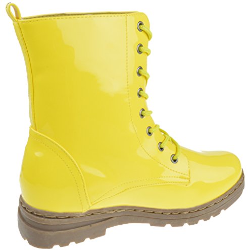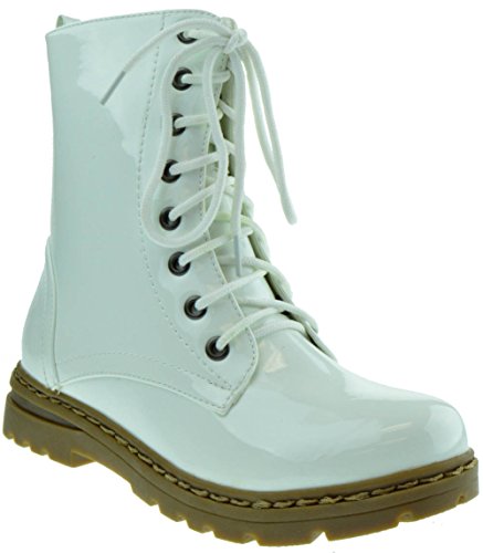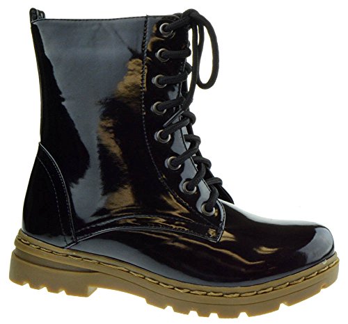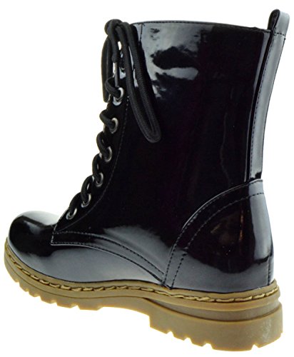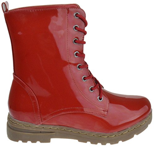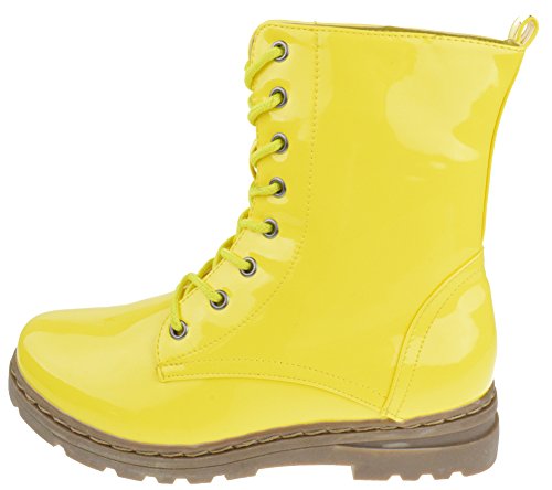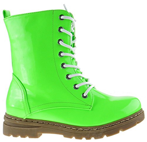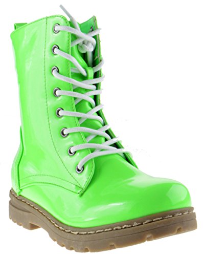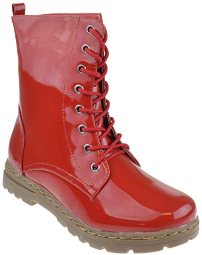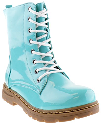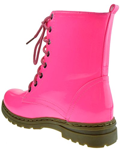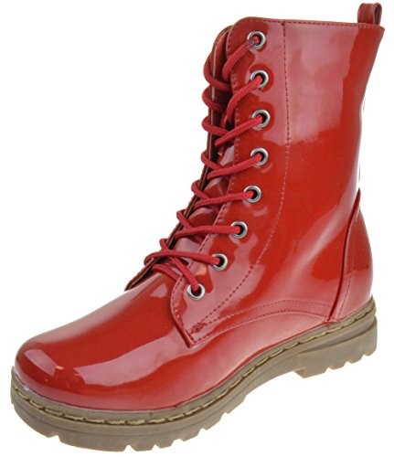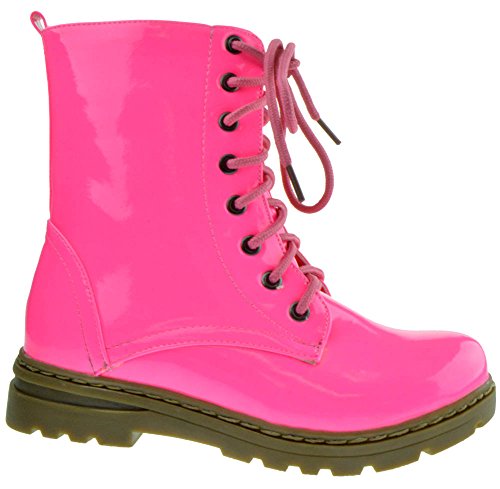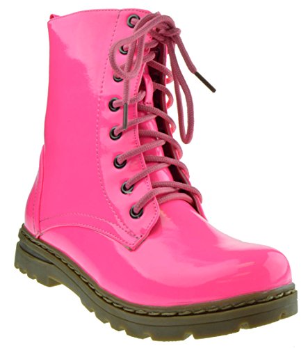Gwen 01 HI Womens Patent Milatary Lace Up Combat Boots PINK