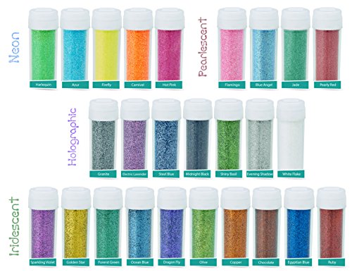 - GREAT ASSORTED COLOR SELECTION: Looking for fairy or unique colors for your DIY? Our jars are filled up with 10g of glitter. We included neon colors in addition to our unique selection of vibrant metallic, holographic, iridescent multicolor glitters : gold, rose, silver, blue, purple, black and many more at your disposal