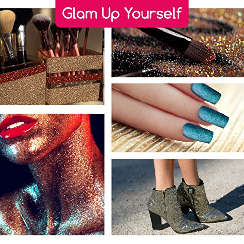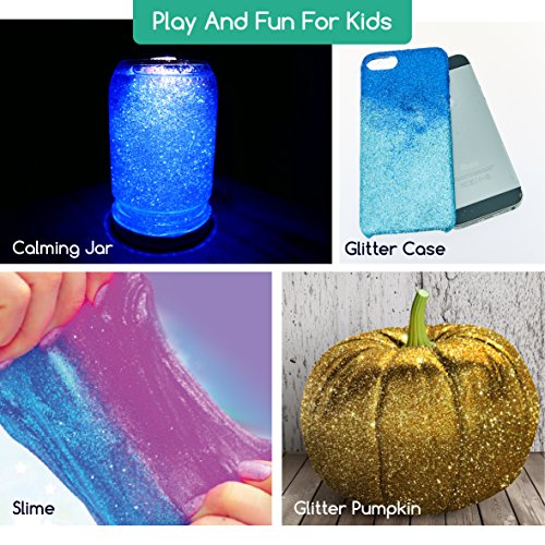 - PERFECT FOR CRAFT AND DIY: Our shiny Glitter adds brilliant sparkle and shimmer to all your projects - Christmas ornament, birthday parties, valentines cards - home decoration (glass, candle, mug, frame , gift wrap...) - kids activities (school project, slime, scrapbooking, phone case...) – glam up your body and nails ; your imagination is the limit. Ideal art supply for all your projects.