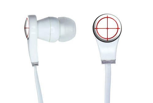 -. Binding : Wireless Phone Accessory -. Brand : Graphics and More -. Color : White -. EAN : 0719926683326 -. Feature : Adds style to your music listening / In-ear ear bud design / Flat wires to reduce tangling / Includes the urethane encased design as shown / Sold individually -. Label : Graphics and More -. Manufacturer : Graphics and More -. Model : HPHONE_CL_RND_0056 -. MPN : HPHONE_CL_RND_0056 -. PackageQuantity : 1 -. PartNumber : HPHONE_CL_RND_0056 -. ProductGroup : Wireless -. ProductTypeName : WIRELESS_ACCESSORY -. Publisher : Graphics and More -. Studio : Graphics and More -. Title : Graphics and More Sniper Scope Sight Target Novelty In-Ear Headphones Earbuds - Non-Retail Packaging - White -. UPC : 719926683326