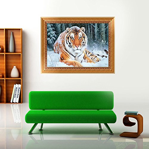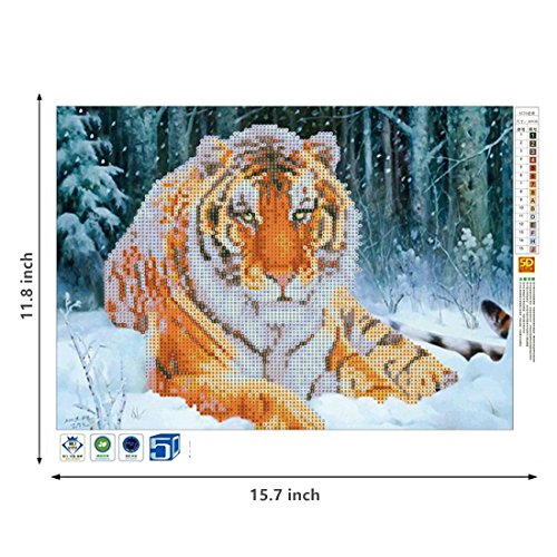 DIY 5D Diamond Painting by Number Kit, Snow Tiger Crystal Rhinestone Embroidery Cross Stitch Arts Craft Supply Canvas Wall Decor