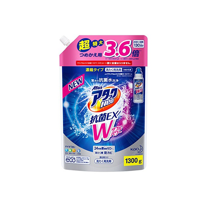 원본상품명: 【大容量】アタックNeo 抗菌EX Wパワ? 洗濯洗? 濃縮液? 詰替用 1300g
