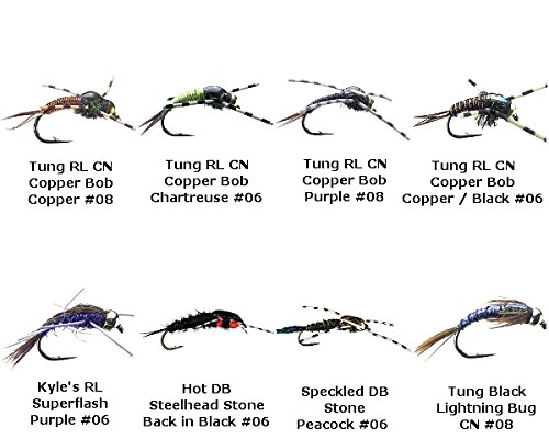 -. Feature : 8 quality Steelhead Flies tied by Montana Fly Company / Tung RL CN Copper Bob - Copper #08, Tung RL CN Copper Bob - Chartreuse #06, Tung RL CN Copper Bob - Purple #08, Tung RL CN Copper Bob - Copper / Black #06, Kyle's RL Superflash Purple #06, Hot DB Steelhead Stone - Back in Black #06, Speckled DB Stone-Peacock#06, Tung Black Lightning Bug CN #08 / Endorsed by the owners of Dream Drift Flies / Innovative and professionally tied flies