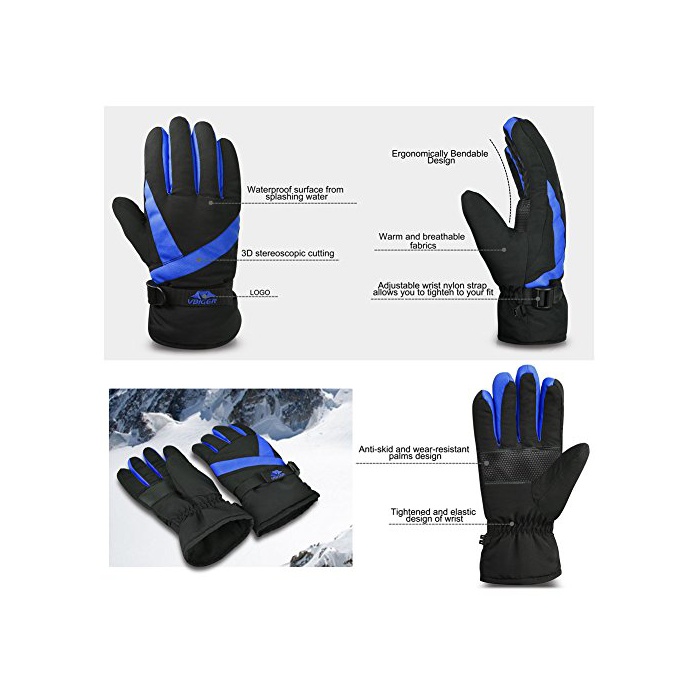 VBIGER 스키 글로브 스노보드 글로브 오토바이 자전거용 방수 방한 방풍 장갑 미끄럼방지부 맨즈 레이디스 풀 손가락 겨울 아웃도어