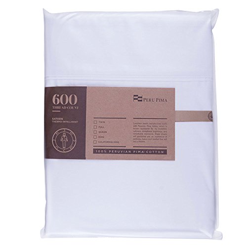Peru Pima - Temperature Regulating Sheets - 600 Thread Count - 100% Peruvian Pima Cotton - Sateen - Bed Sheet Set - King, White