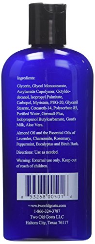 -. Binding : Health and Beauty -. Brand : Two -. EAN : 0853268005016 -. Feature : Two Old Goats Essential Oil Lotion *Product Type: Essential Oil Lotion *Conta -. IsAdultProduct : 0 -. Label : Two Old Goats Llc -. Manufacturer : Two Old Goats Llc -. MPN : A&F 4 OZ -. NumberOfItems : 1 -. PackageQuantity : 1 -. PartNumber : A&F 4 OZ -. ProductGroup : Health and Beauty -. ProductTypeName : HEALTH_PERSONAL_CARE -. Publisher : Two Old Goats Llc -. Size : 4 oz. -. Studio : Two Old Goats Llc -. Title : Two old goats essential oil lotion 4 fl oz -. UPC : 853268005016