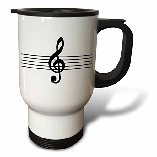 3dRose tm_232120_1 "Treble Clef G Clef On Musical Staves staff black & White Music Gift Stainless Steel" Travel Mug, 14 oz, Natural