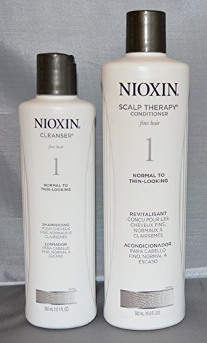 Studio : Nioxin Publisher : Nioxin Binding : Misc. Product Description Nioxin Cleanser System 1 For Fine, Normal to Thin-Looking Hair. Helps to remove follicle-clogging sebum, fatty acids and environmental residues from the scalp skin and hair. Cleanses to provide thicker-looking hair. It is part of system 1 that contains 3 specialized technologies: Bioamp, Transactive Delivery System and Activ-Renewal. Nioxin Scalp Therapy Conditioner System 1 For Fine, Normal to Thin-Looking Hair. A lightweight conditioner that helps to provide hair resilience and control moisture balance for normal to thin-looking hair. It is part of system 1 that contains 3 specialized technologies: Bioamp, Transactive Delivery System and Activ-renewal. This is a 2 pack, Includes 1 Nioxin System 1 Cleanser 10.1 oz and 1 Nioxin System 1 Scalp Therapy Conditioner 16.9 oz. 0