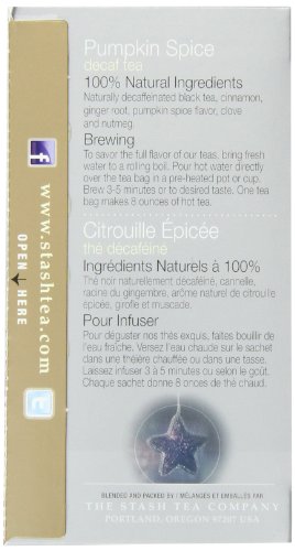 -. Title : Stash Tea Decaf Pumpkin Spice Tea, 18 Count Tea Bags in Foil (Pack of 6)