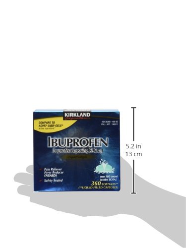 -. Feature : Kirkland Signature Ibuprofen offers temporary relief of minor aches and pains. / temporarily relieves minor aches and pains / temporarily reduces fever / Pack of two, 180-counts per bottle(total of 360 counts) / Pain reliever and fever reducer(NSAID) / Compare to Advil Liquid Gels