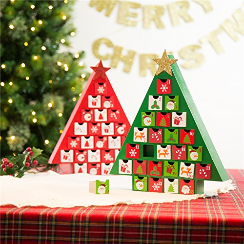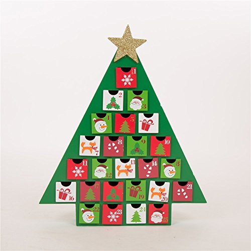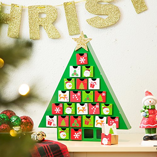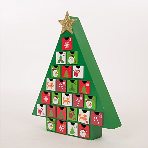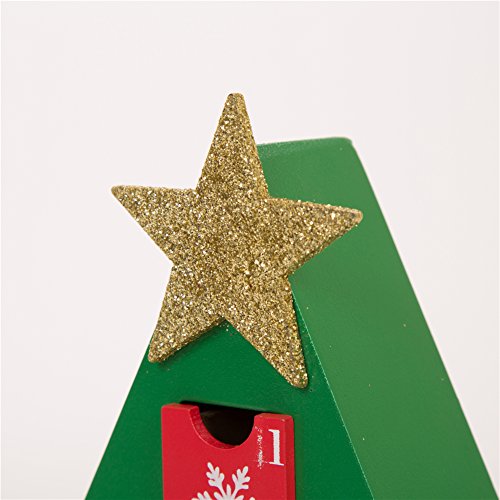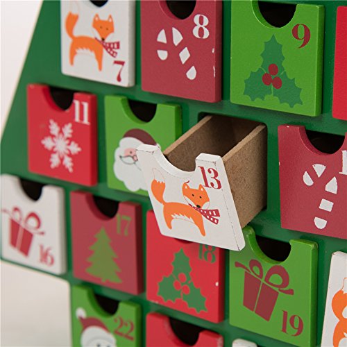 Glitzhome Handcrafted Wooden Tree Count Down Advent Calendar With Drawer, Green