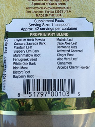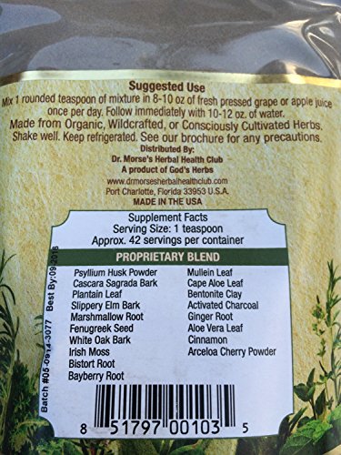 - Feature : Dr. Morse's Proprietary Blend to pull toxins, cleanse lymph and intestines / Made from Organic, Wildcrafted or Consciously Cultivated Herbs / Use teaspoon mixed with fresh juice once daily / Designed to be natural intestinal cleanser and toxin absorber / Astringent and lymphatic puller