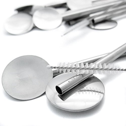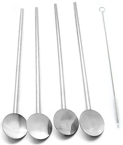 EKIND Drinking Straw Spoon Stainless Steel Mixing Spoon, Bar Cocktail Shaker Spoon Mixing Spoon (Set of 4)