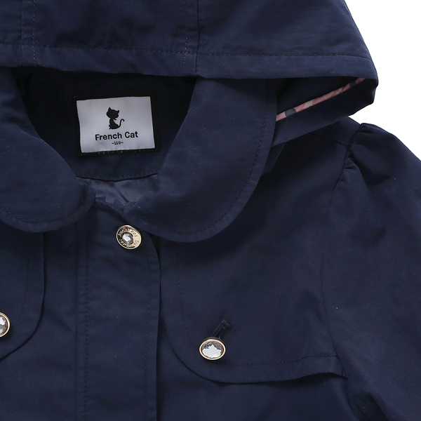 상품설명 모던한 네이비 컬러의 사파리 입니다. 간절기에 걸치기 좋은 아우터 아이템입니다. 탈부착이 가능한 후드가 달려 있어 캐주얼한 코디가 가능합니다. 등에는 귀여운 캣 아플리케 자수와 블링한 로고 자수로 포인트를 주었습니다.