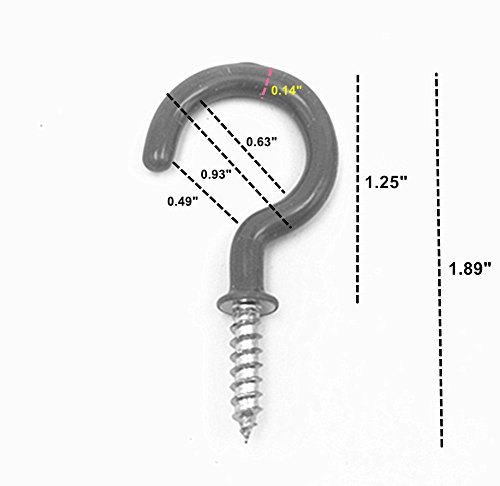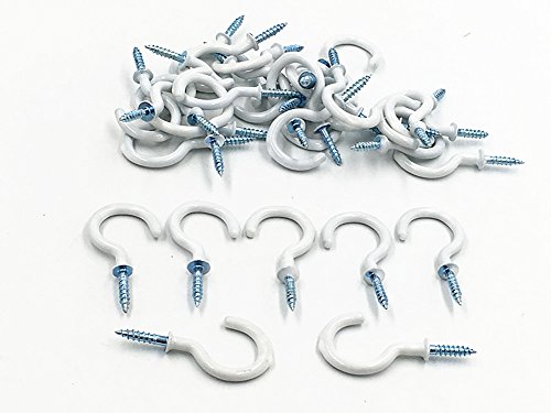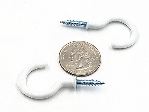 Kinteshun Medium Size PVC Coated Screw-in Open Hooks Single Hangers,Cup Hooks Ceiling Hooks(50pcs,1.25 inches,White)