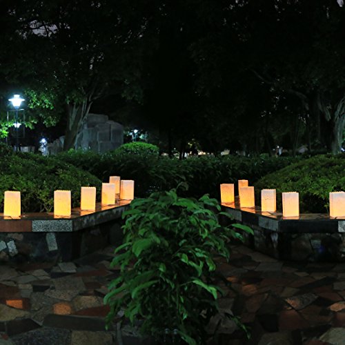 Package include: 50 x Flickering Led Tea Light Candles 50 x Luminary Bags