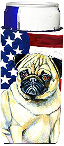 USA American Flag with Pug Ultra Beverage Insulators for slim cans LH9002MUK