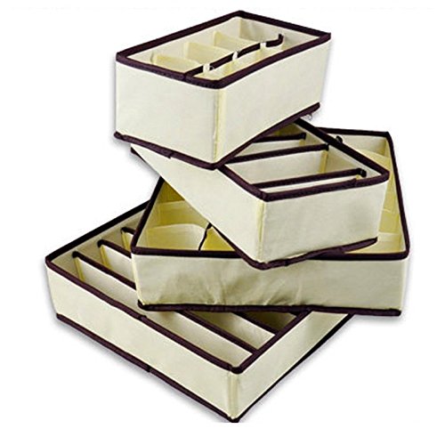 -. Feature : Great for organizing lingerie, underwear, panties, bra, socks, scarf, ties and can be folded back when not being used / The whole boxes are made of non-woven fabric, which is moth-proof, mould-proof, moisture-proof, and very durable. / Package includes: 6 cell + 7 cell + 8 cell + 24 cell. / 6 cell drawer: 12" X 6" X 4-1/4", 7 cell drawer: 12" X 12" X 4-1/4", 8 cell drawer: 12" X 6" X 4-1/4", 24 cell drawer:12" X 12" X 4-1/4"