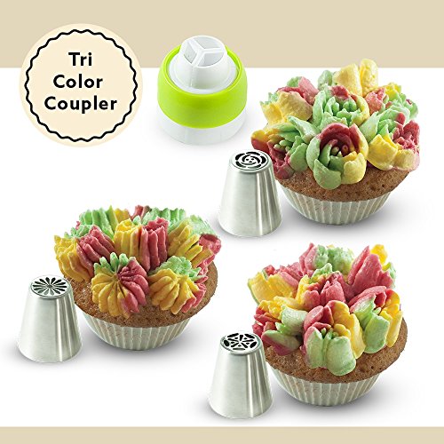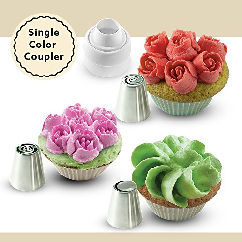 - INCLUDED: 8 Russian Piping Tips, 1 Cotton Reusable Bag, 10 Disposable Pastry piping Bags, 1 Single Color Coupler, 1 Tri-Color Coupler and one assembly User Manual