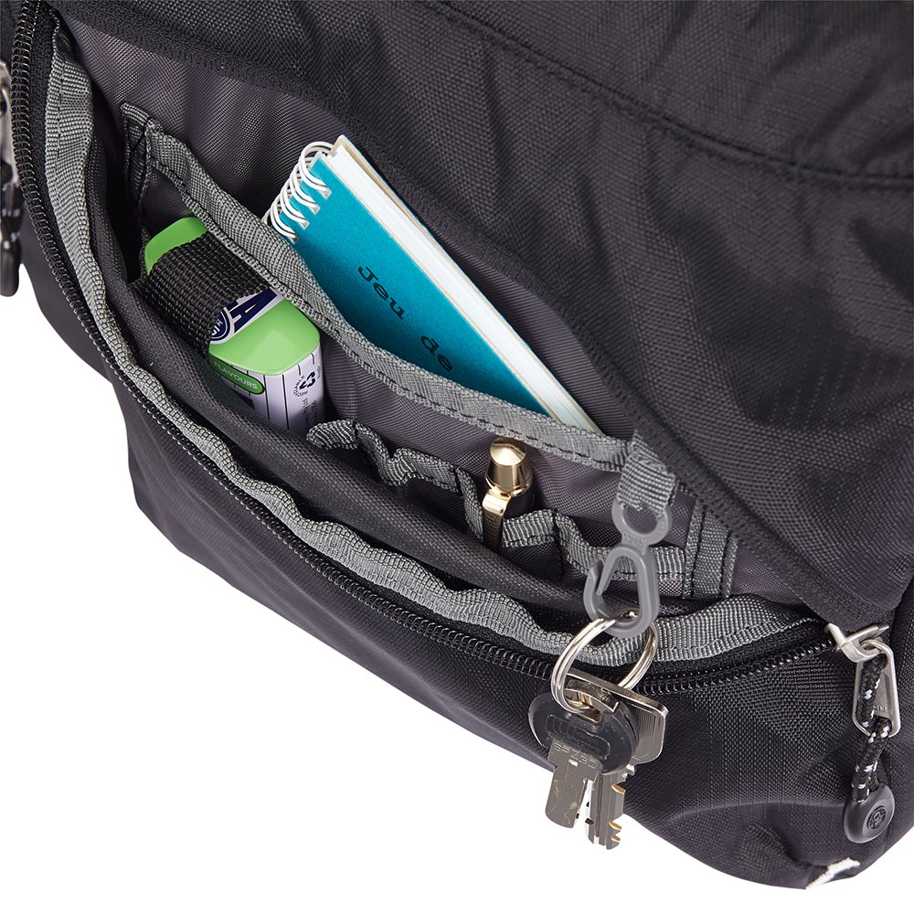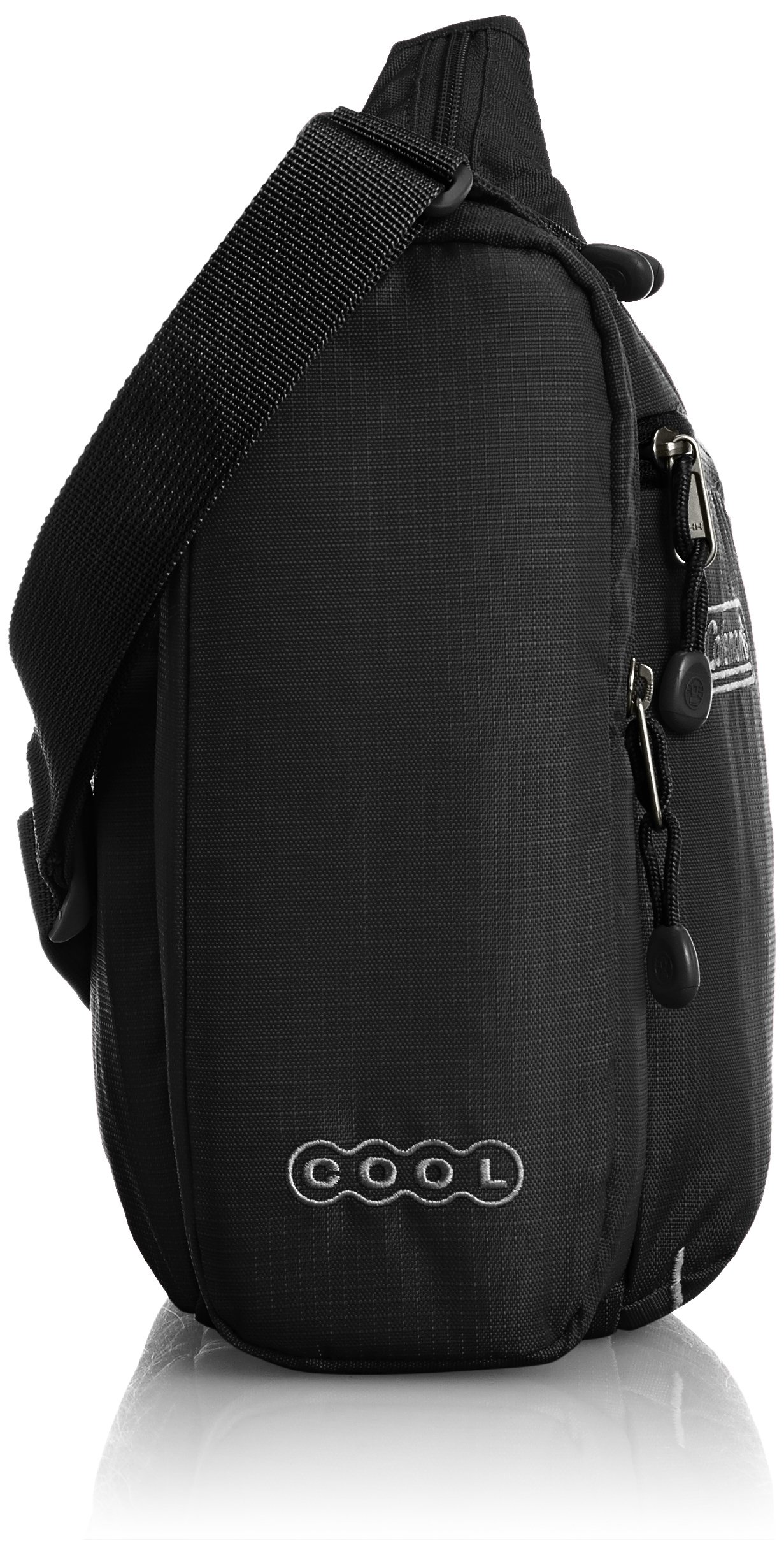 Safety structure of padded body, shoulder bag with PET bottle cooler.