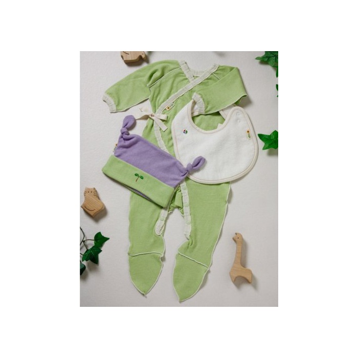 우아 yuga☆족부착 거즈 롬퍼스(rompers) 치자나무 염색 70cm 오거닉 코튼100% 천연 염색 선물 출산 축하하게 최적