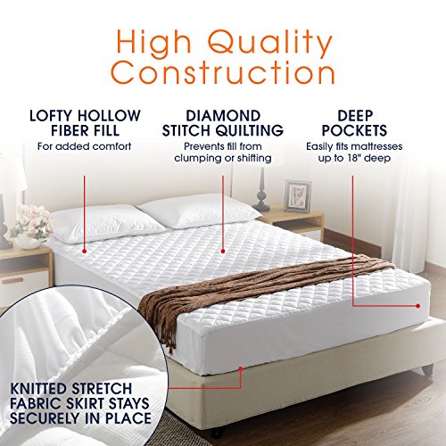 -. Brand : Cheer Collection -. Feature : PROTECTION - Protect your expensive mattress and extend its longevity by keeping it clean and stain free. This non-waterproof quilted mattress pad and protector is meant to absorb fluids and prevent dust mites from getting to your mattress / COMFORT - Generously filled with hollow fiber fill which is designed to add a layer of padding for added comfort and breathability. / DEEP POCKETS - Elastic stretch fabric around the full perimeter easily fits deep mattresses, and those with pillow tops or mattress toppers. Stretches up to 18" of depth / HYPOALLERGENIC - fill will keep allergy sufferers safe and protect their mattress from exposure to dust mites and other allergens / CARE INSTRUCTIONS - The mattress protector is machine washable in cold/warm water, tumble dry on low or no heat -. Label : Cheer Collection -. Manufacturer : Cheer Collection -. ProductGroup : Home -. ProductTypeName : HOME_BED_AND_BATH -. Publisher : Cheer Collection -. Studio : Cheer Collection -. Title : Cheer Collection Quilted Mattress Pad Fitted Up to 18" Deep Mattress Cover For Extra Comfort and Protection