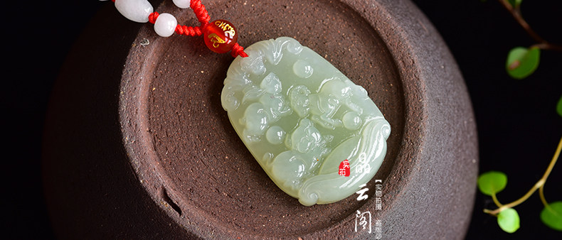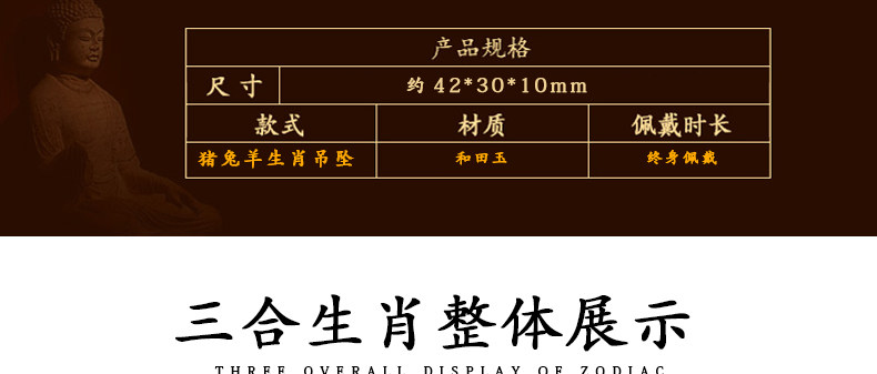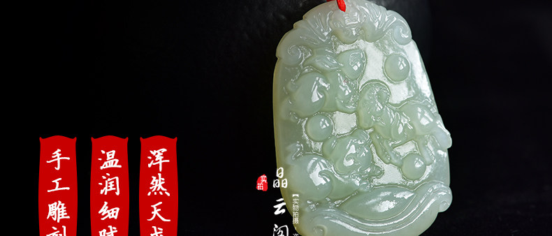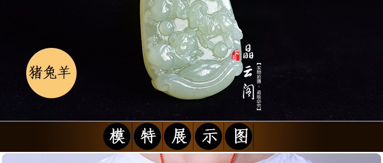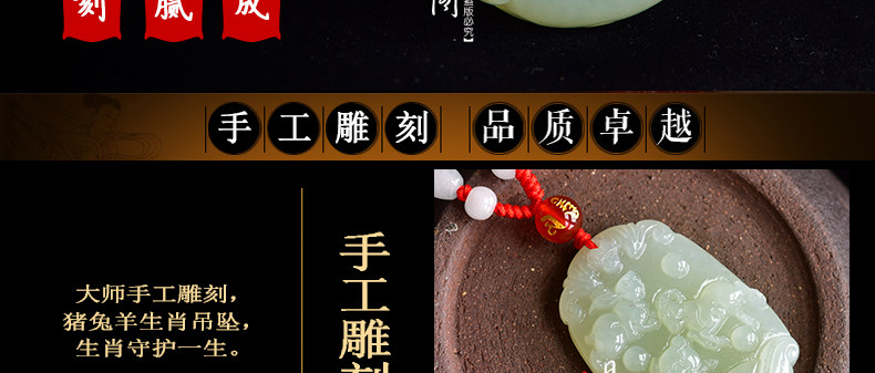 开光 和田玉亥卯未三合吊坠 十二生肖猪兔羊男女款项链玉坠挂件