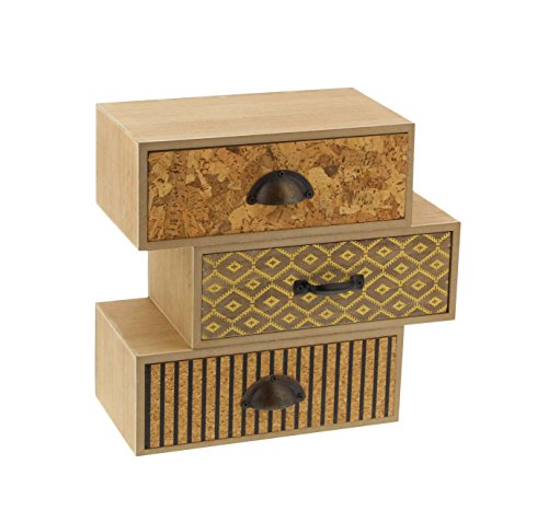 Deco 79 85256 Asymmetrical 3-Drawer Wooden Jewelry Chest, Brown/Gray/Yellow/Black