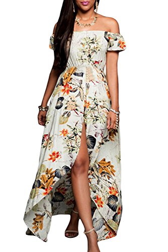 Binding : Apparel Product Description The off-the-shoulder neckline with elastic band makes you look more elegant and different from other women, short sleeves, side zipper and the multi-color floral print also creates a 100% head-turning rate. Front slit maxi skirt attached shorts underneath is very alluring with legs exposing to be seen.Size:(US 4-6)S:Bust:33.1-36.2; Waist:26.0-31.5; Hip:37.0-40.2; Length:55.1;(inch)(US 8-10)M:Bust:34.7-37.8; Waist:28.0-33.1; Hip:38.6-41.7; Length:55.5;(inch)(US 12-14)L:Bust:37.0-41.2; Waist:29.9-35.4; Hip:40.2-43.3; Length:55.9;(inch)Notes:1.The real color of the item may be slightly different from the pictures shown on website caused by many factors such as brightness of your monitor and light brightness.2.Please allow slight (0-2cm) manual measurement deviation for the data. 0
