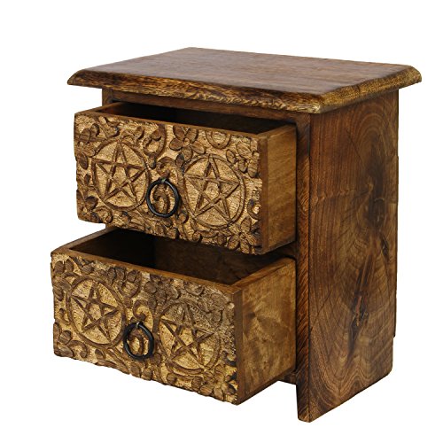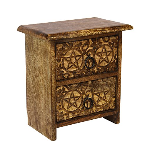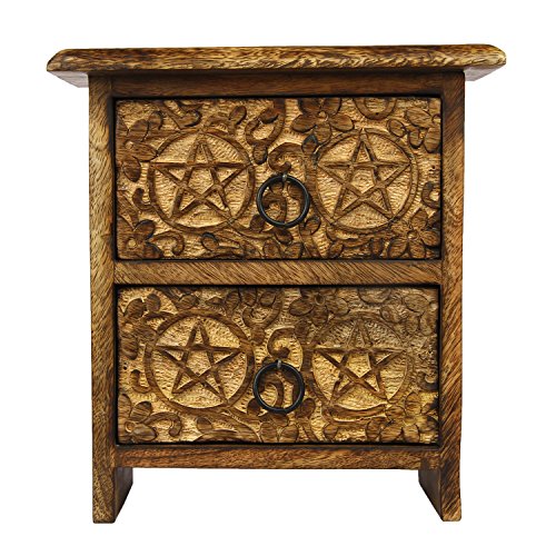 Valentine Gifts Ideas Wooden Pentacle Design Keepsake 2 Drawer Trinket Jewelry Storage (8.5 x 8 x 4 in)