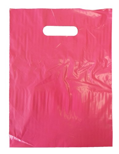 9 x 12 Hot Pink Die Cut Handle Plastic Shopping Bags 100/cs