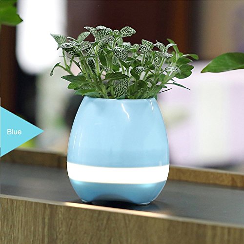 matozi Smart Music Flowerpot Playing Piano on Real Plant Wireless Bluetooth Speaker Musical Box Planter Night Colorful light (Without Plant) (blue)