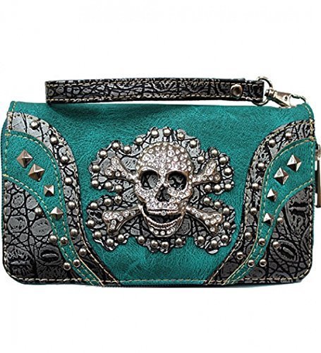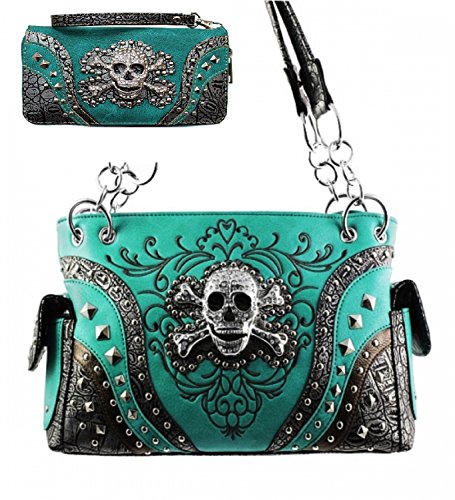 Turquoise Skull Studded Conceal and Carry Purse W Matching Wallet