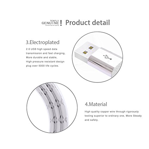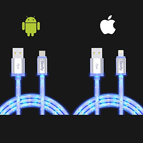 Tenfly Premium LED Glow in Dark High Speed USB 2.0 A Male to Micro USB B Cables Charge & Sync Cords for Android (Android*1 pack)